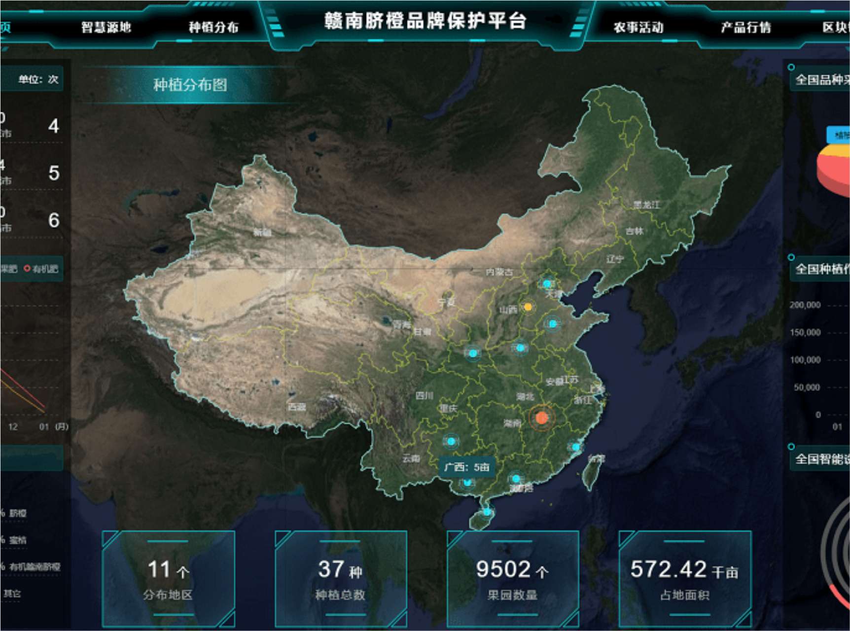 目前國(guó)內(nèi)首個(gè)單品農(nóng)業(yè)全產(chǎn)業(yè)鏈大數(shù)據(jù)平臺(tái),也是國(guó)內(nèi)柑橘產(chǎn)業(yè)首個(gè)大數(shù)據(jù)應(yīng)用平臺(tái)。橙中城大數(shù)據(jù)中心,目前是贛州市第一個(gè)贛南臍橙大數(shù)據(jù)中心。作為整個(gè)果業(yè)的數(shù)據(jù)指揮部也將打造成整個(gè)贛南臍橙產(chǎn)業(yè)乃至中國(guó)柑橘產(chǎn)業(yè)的指揮部。以大數(shù)據(jù)技術(shù)區(qū)塊鏈技術(shù)、互聯(lián)網(wǎng)技術(shù)、移動(dòng)互聯(lián)網(wǎng)技術(shù)為依托,全面附能贛南臍橙產(chǎn)業(yè),實(shí)現(xiàn)電腦端和手機(jī)端數(shù)據(jù)同步。